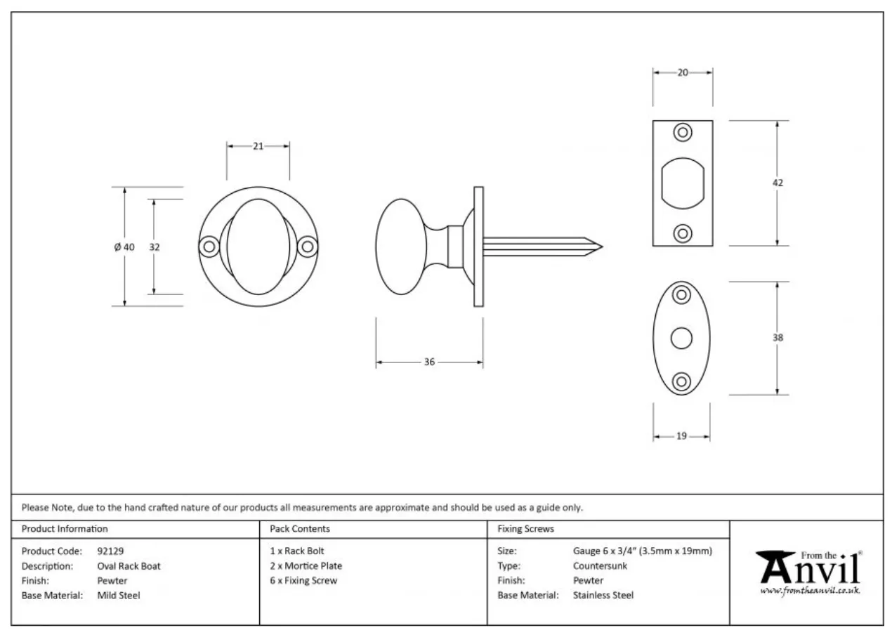 From the Anvil Pewter Oval Rack Bolt Turn | 92129