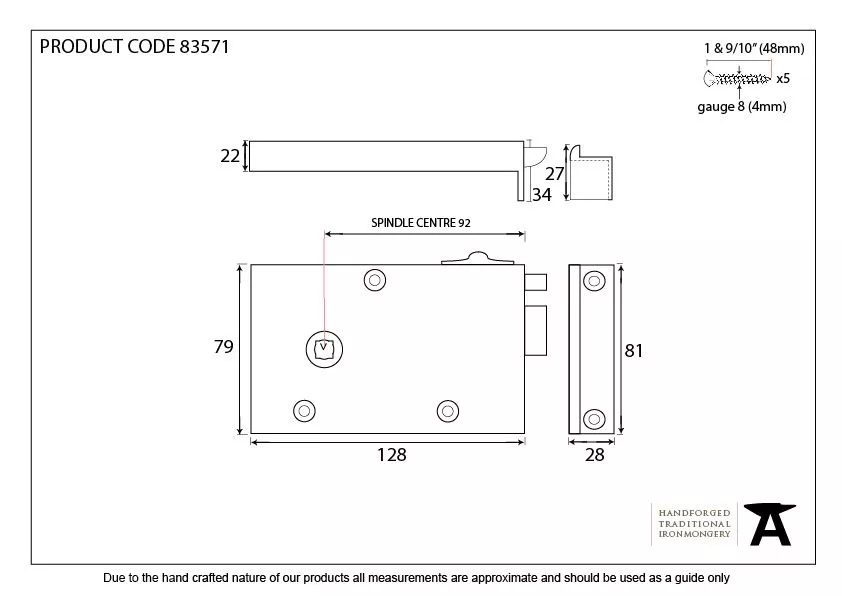 - Rim Lock Size: 128mm x 79mm x 22mm