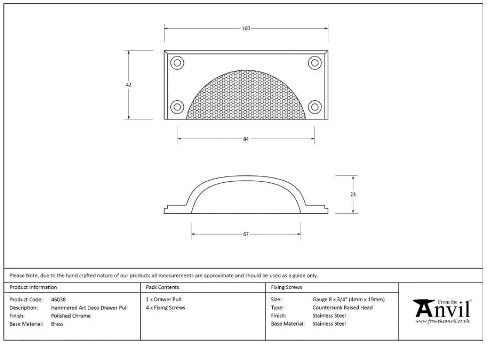 From the Anvil Polished Chrome Hammered Art Deco Cup Drawer Pull | 46038