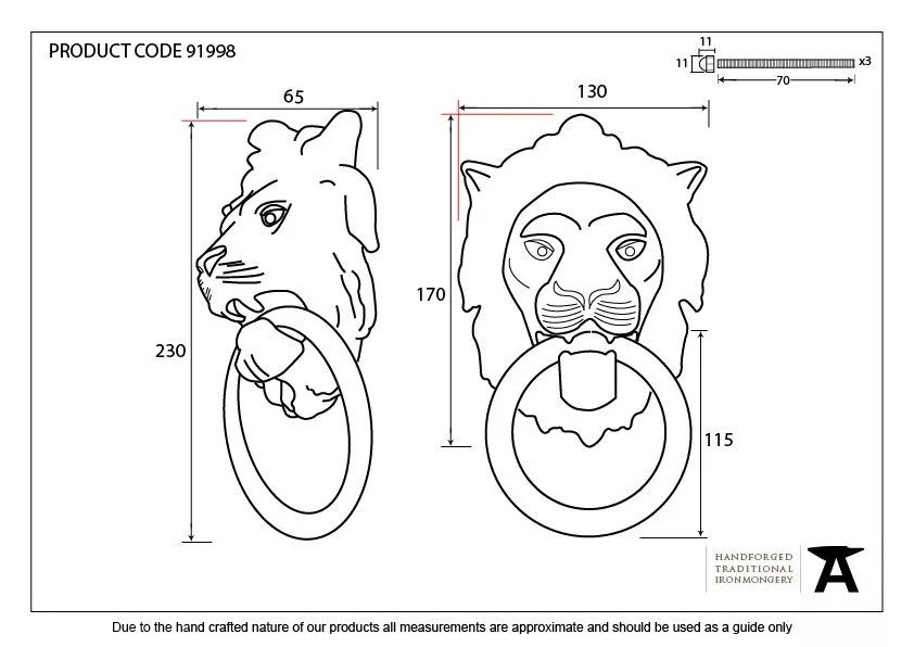 From the Anvil Polished Chrome Lions Head Door Knocker | 91998