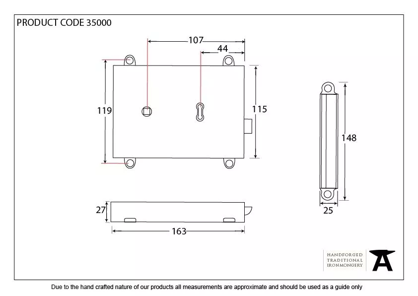 - Rim Lock Cover Size: 163mm x 115mm x 27mm