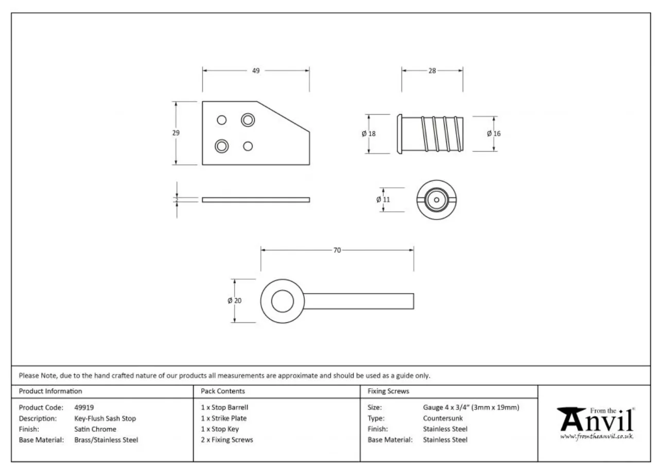 From the Anvil Satin Chrome Key-Flush Sash Window Stop | 49919