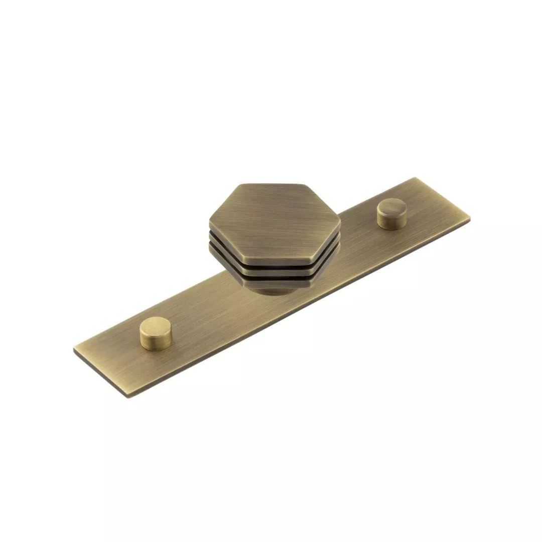 Hoxton Antique Brass Nile 40mm Hexagonal Knob on Plain Backplate HOX340-5090AB