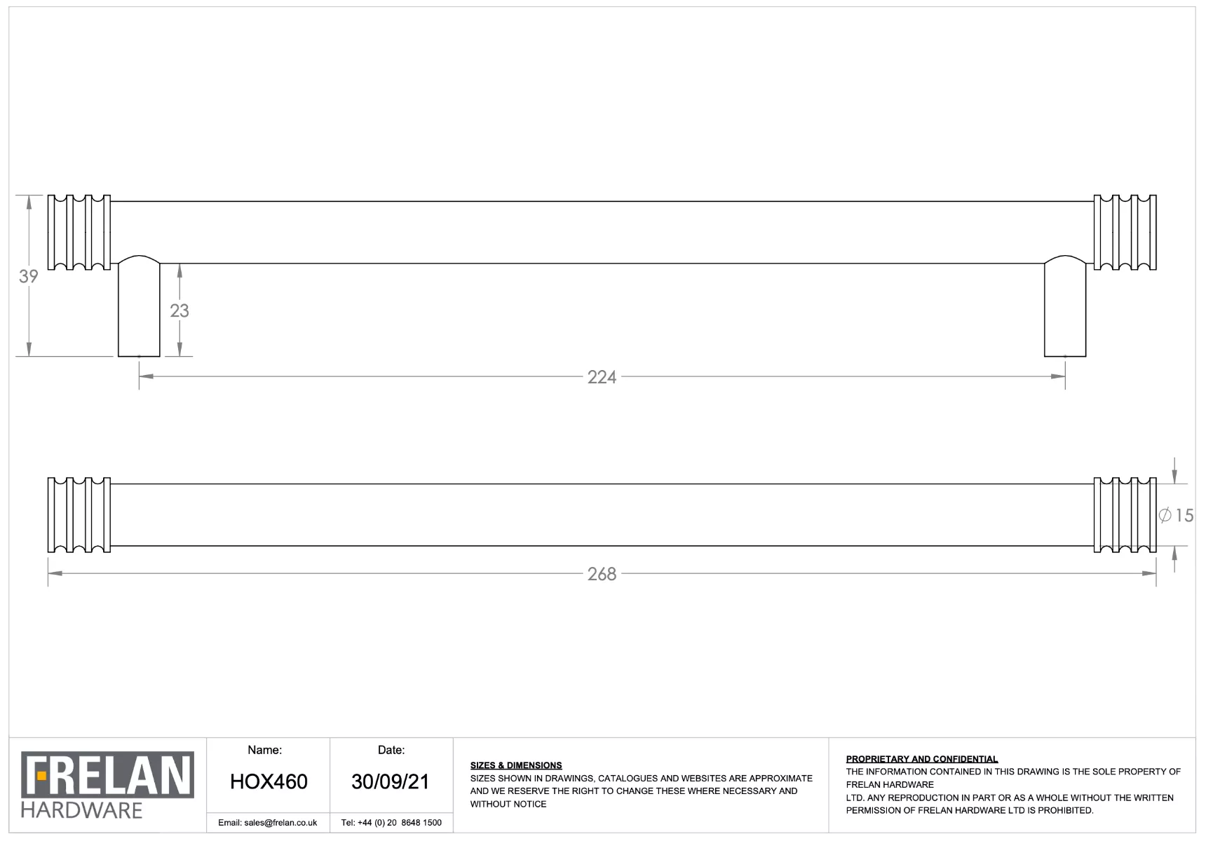 - Handle Centres: 224mm