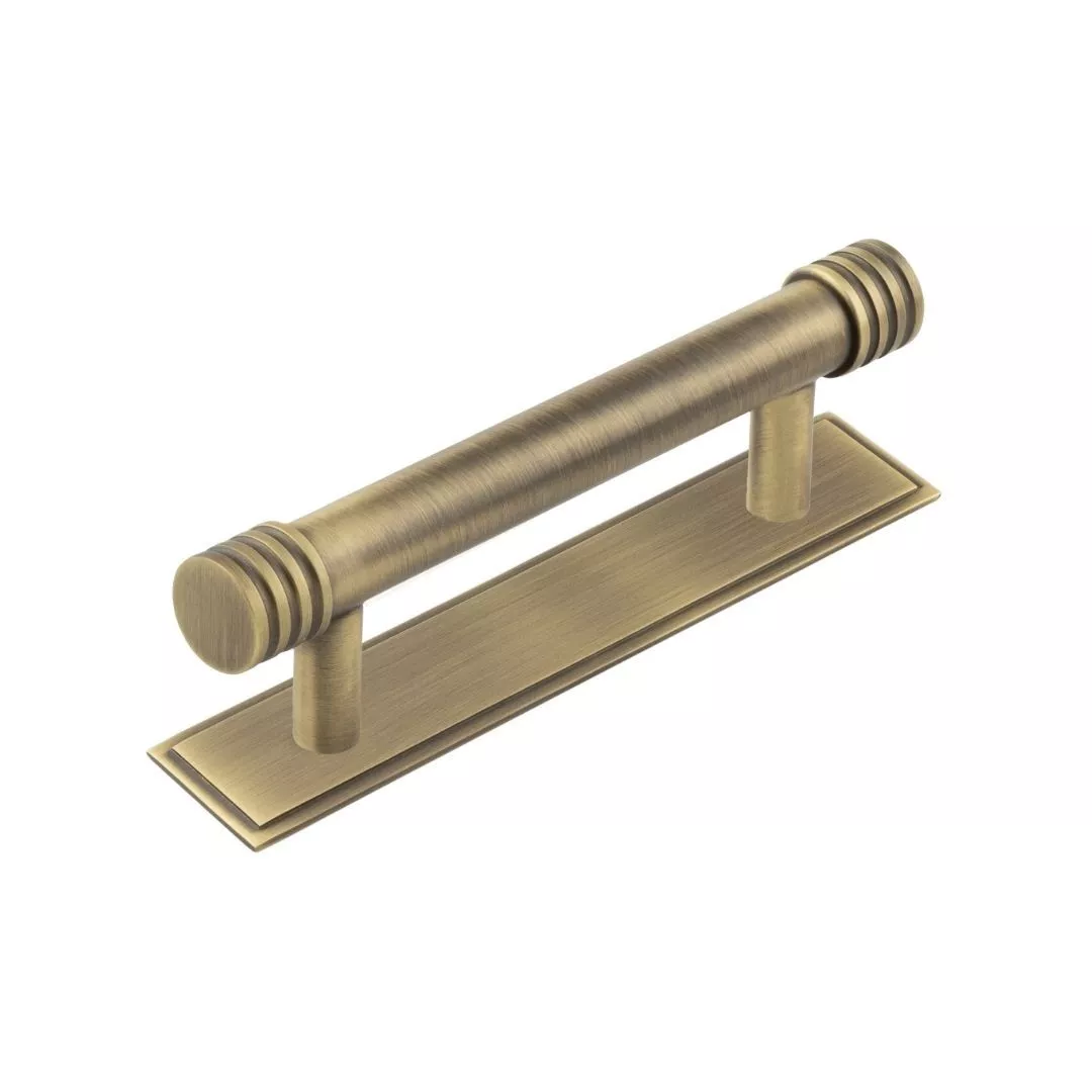 Hoxton Antique Brass Sturt 96mm Grooved End Cap Handle on Stepped Backplate | HOX450-6050AB