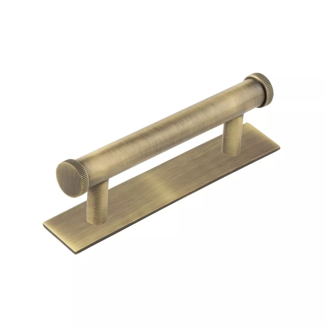 Hoxton Antique Brass Thaxted 96mm Line End Cap Handle on Plain Backplate | HOX250-5050AB