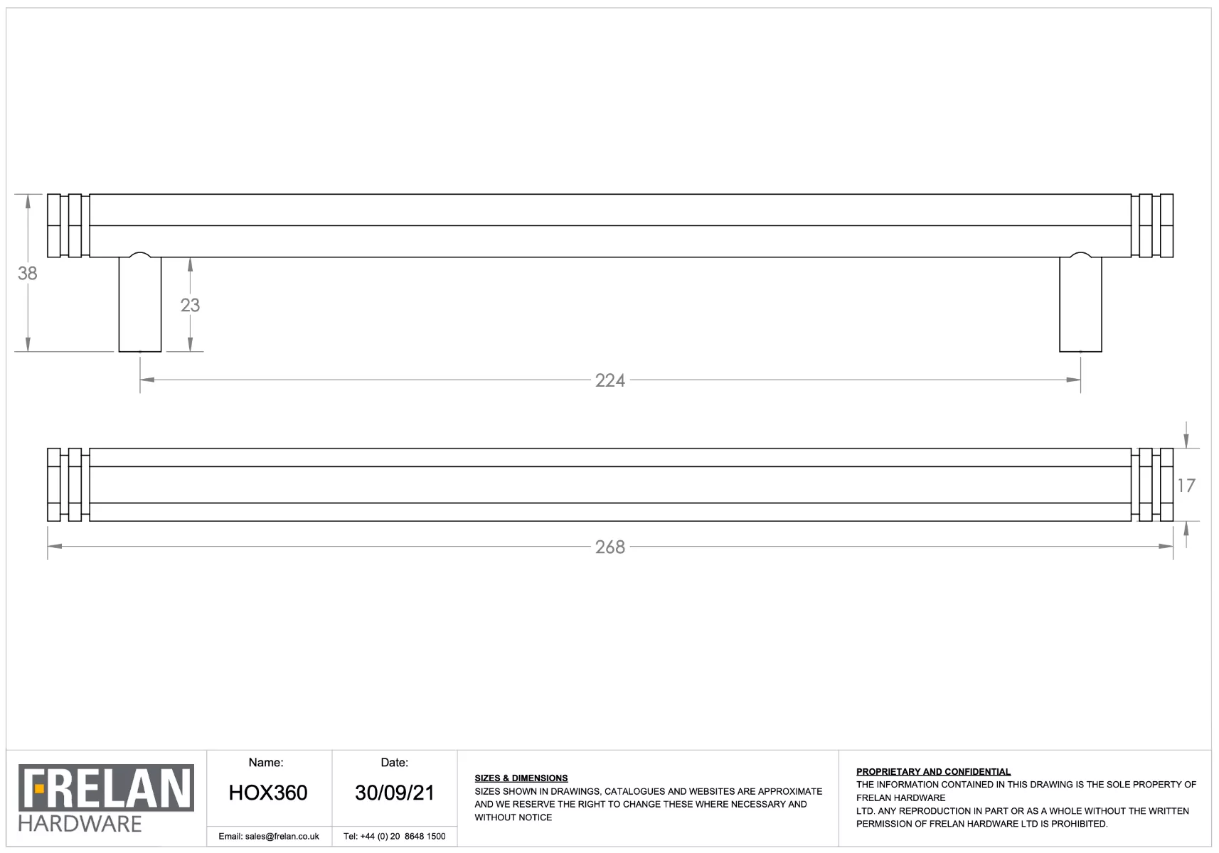 - Handle Centres: 224mm