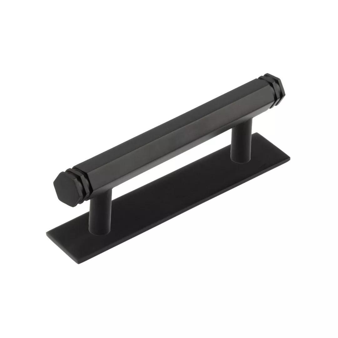 Hoxton Matt Black Nile 96mm Hexagonal End Cap Handle on Plain Backplate | HOX350-5050MB