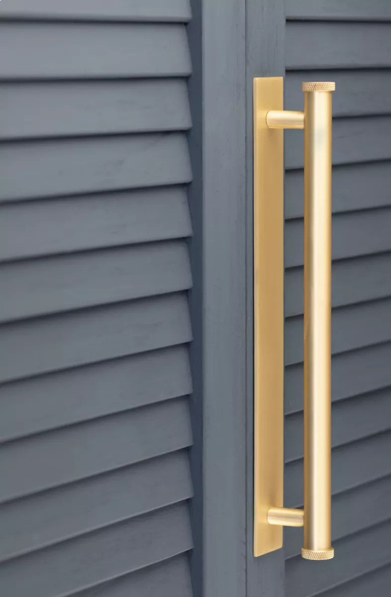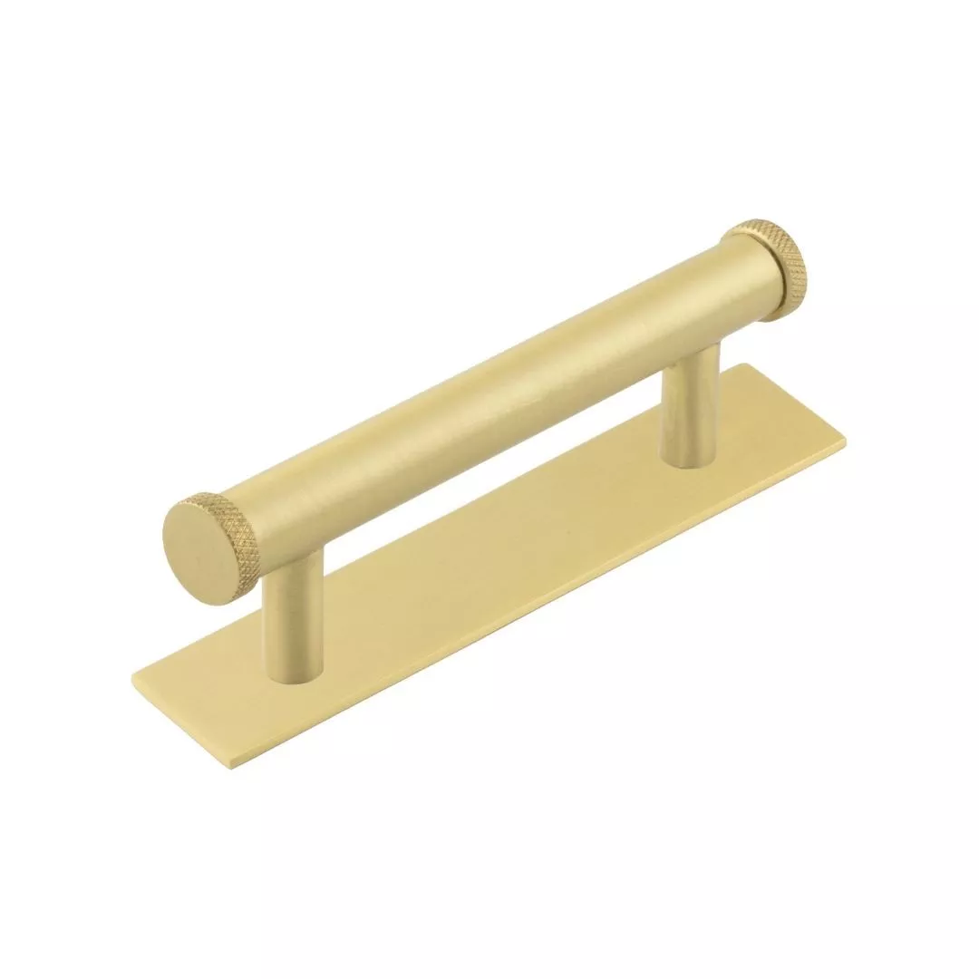 Hoxton Satin Brass Wenlock 96mm Knurled End Cap Handle on Plain Backplate | HOX150-5050SB
