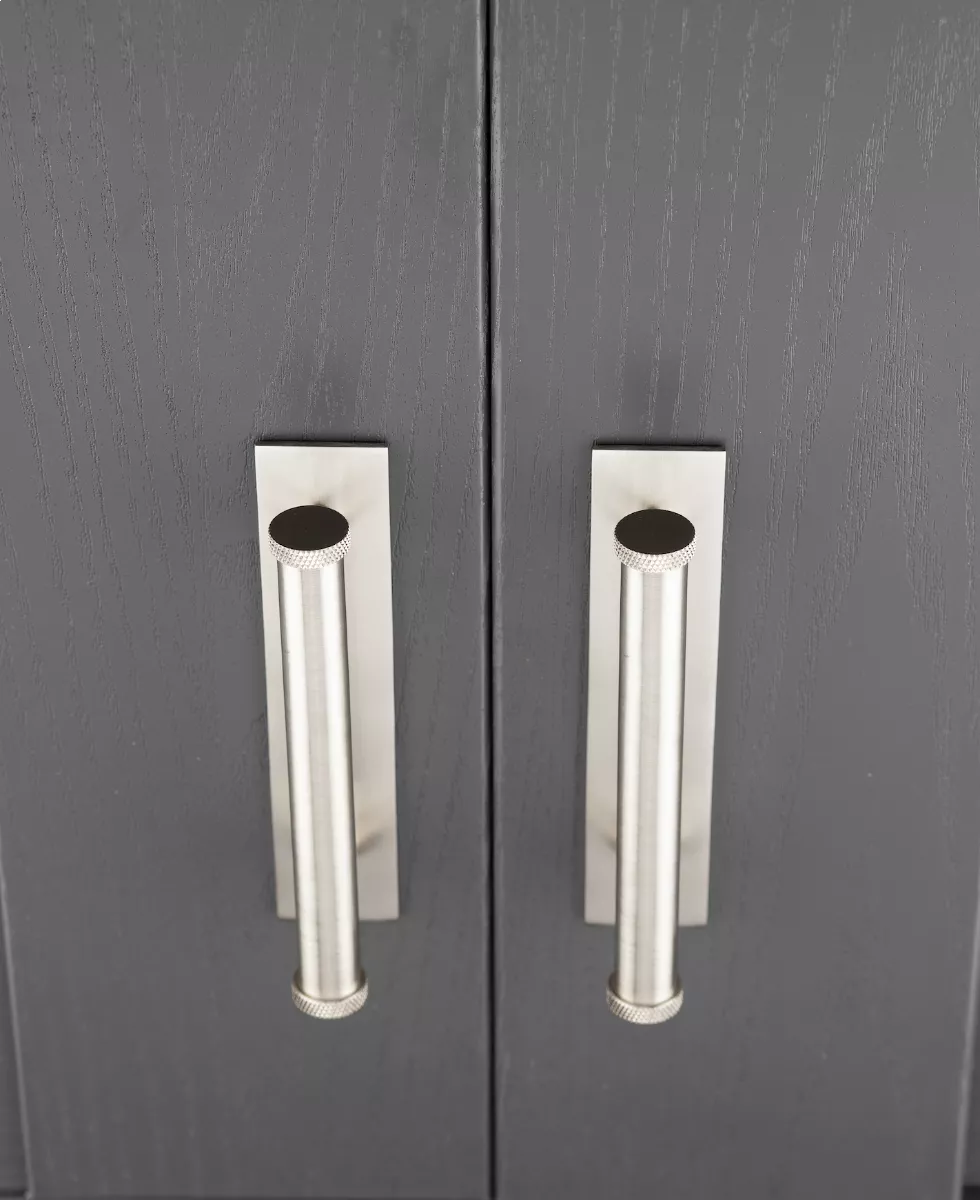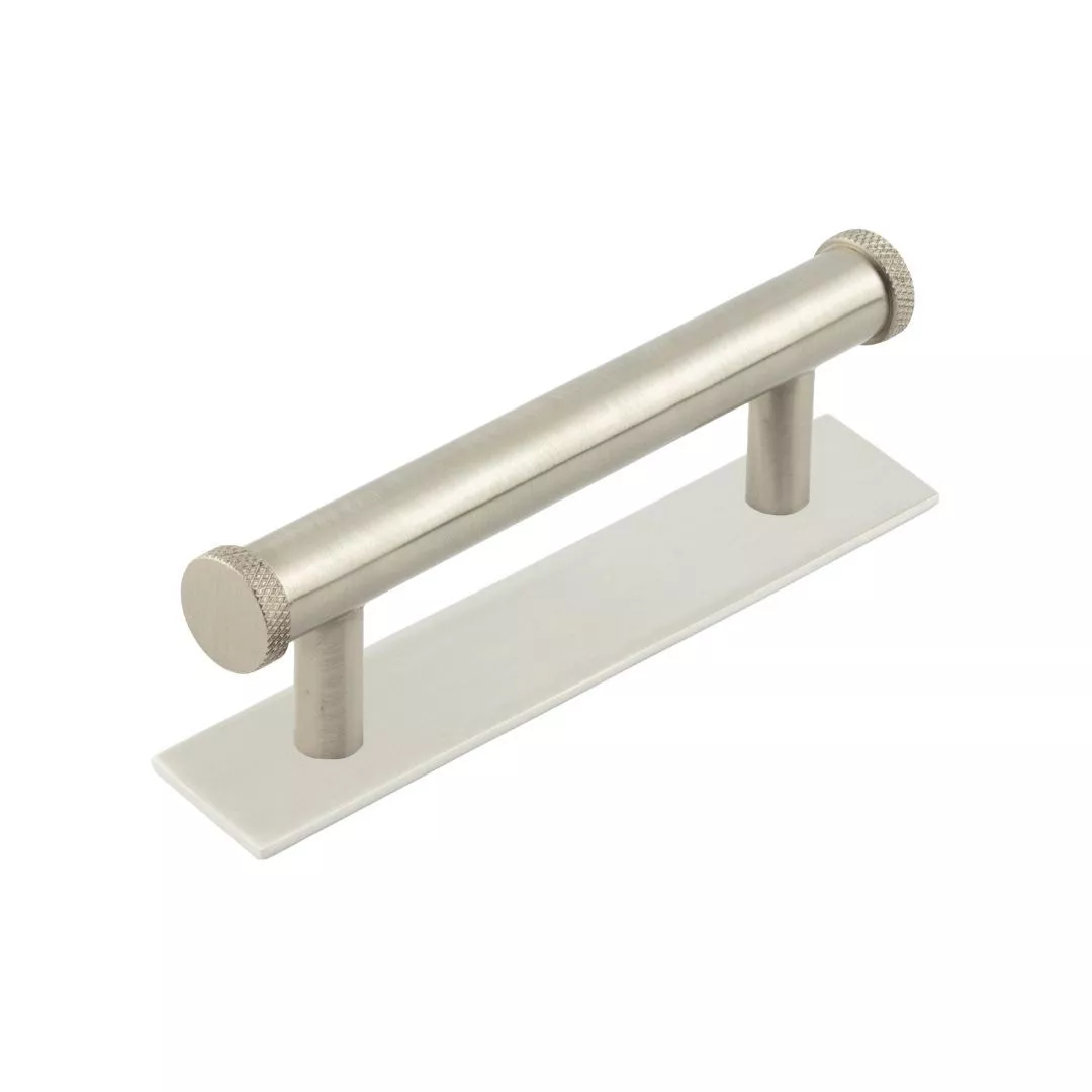 Hoxton Satin Nickel Wenlock 96mm Knurled End Cap Handle on Plain Backplate | HOX150-5050SN