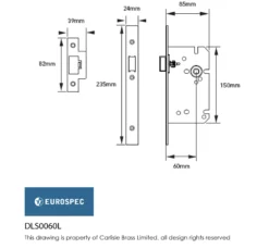 CARLISLE Bright Stainless Steel Easi T Architectural DIN Standard Latch | DLS0060LBSS