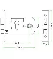 151mm Stainless Steel 3 Lever Horizontal Mortice Lock | G3012SS