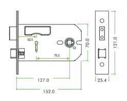 152mm Satin Chrome 3 Lever Horizontal Mortice Lock ZUKH3152SC