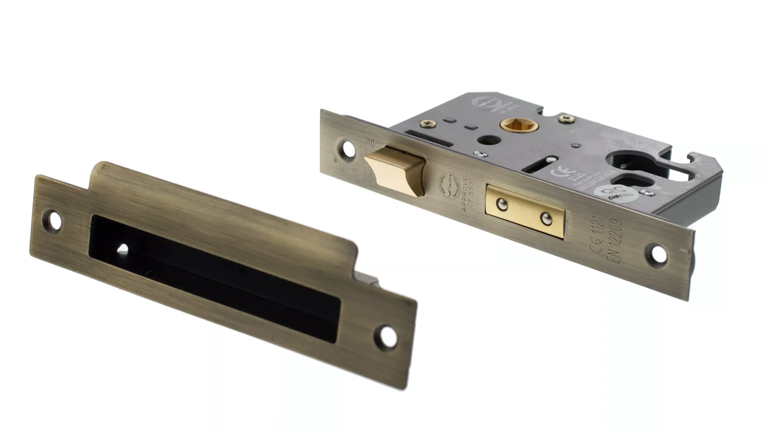 - Complete with matching forend and strike plate
