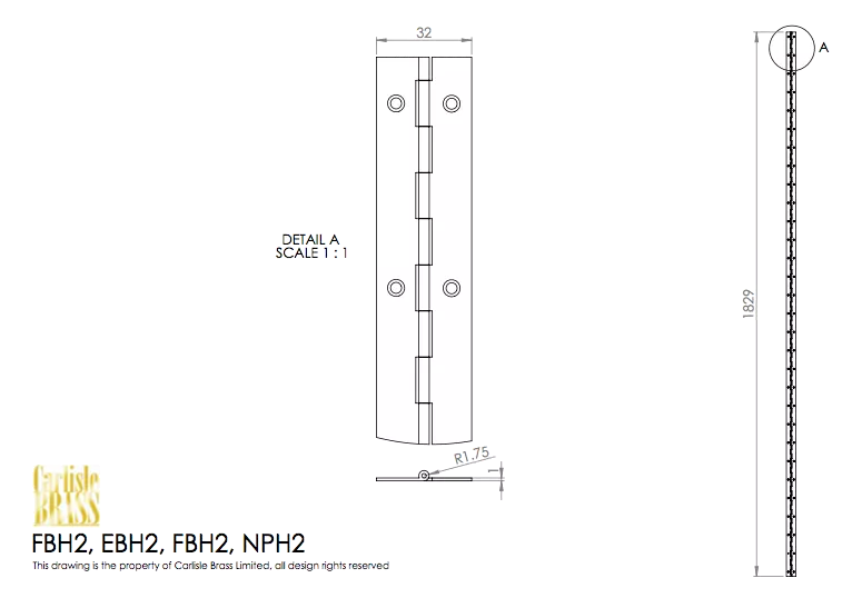 Pack 10 1829 x 32mm Nickel Plated Piano Hinge