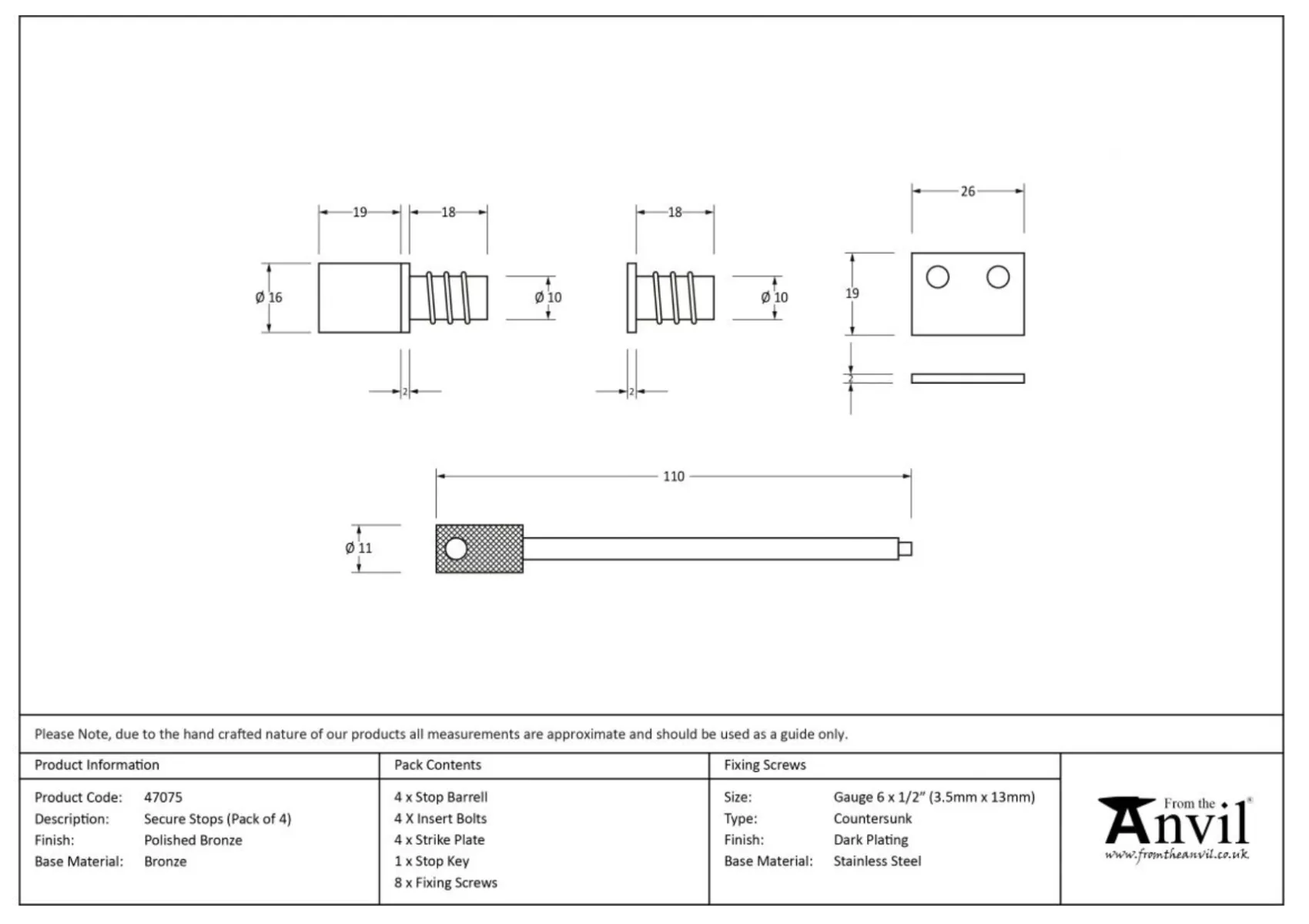 From the Anvil Pack of 4 Polished Bronze 19mm Roller Sash Secure Stop | 47075