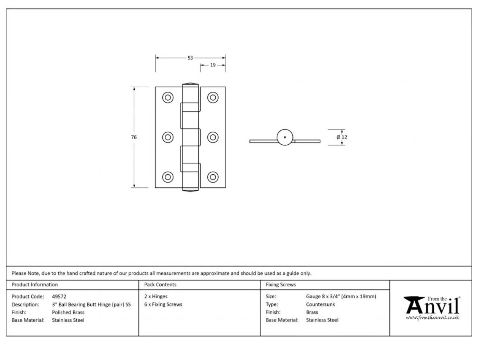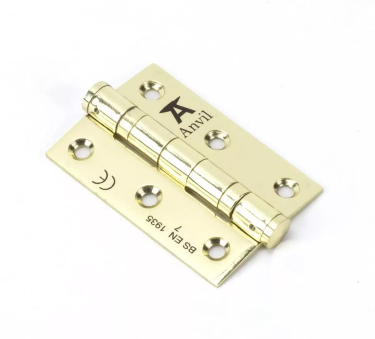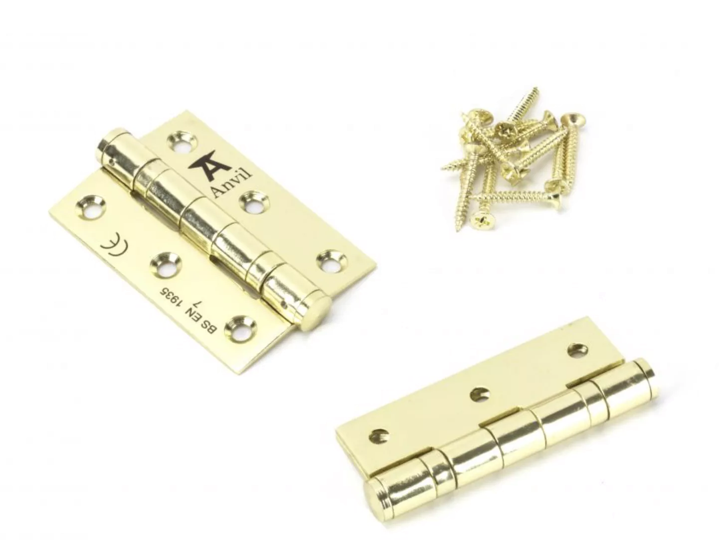 Pair Anvil Polished Brass 3″ (76mm) Ball Bearing Butt Hinge | 49572