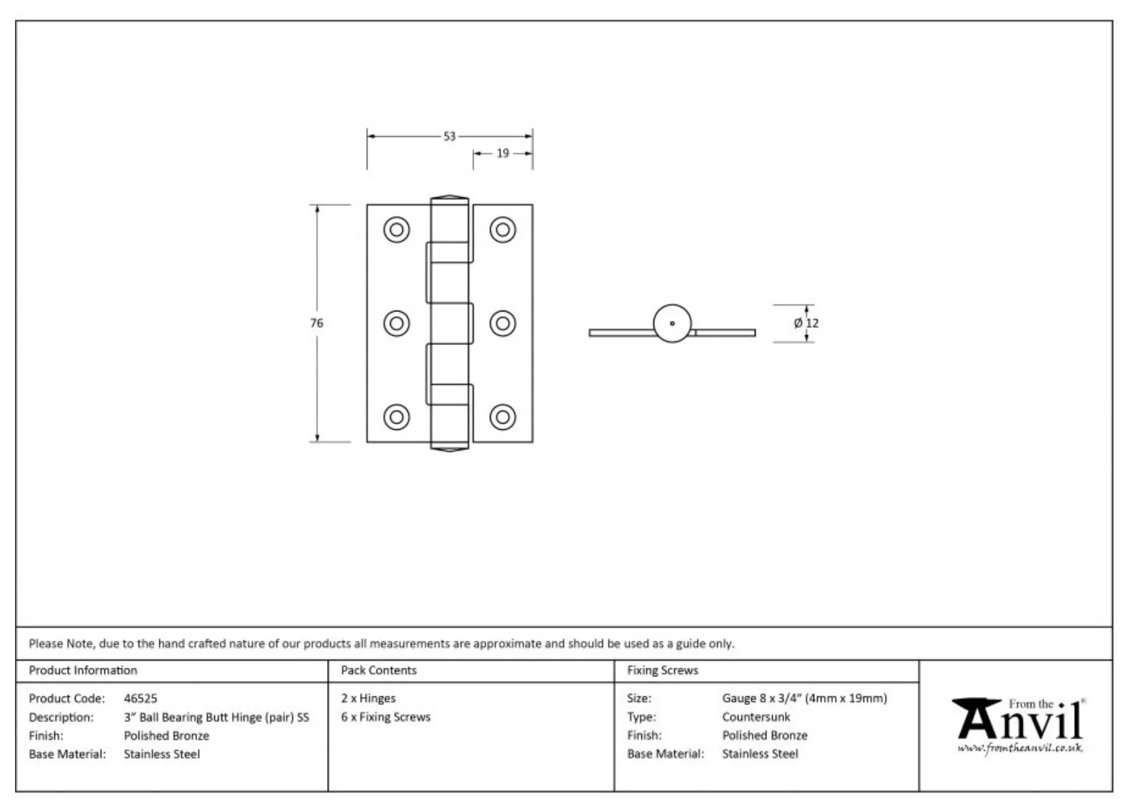 - Manufactured by From the Anvil