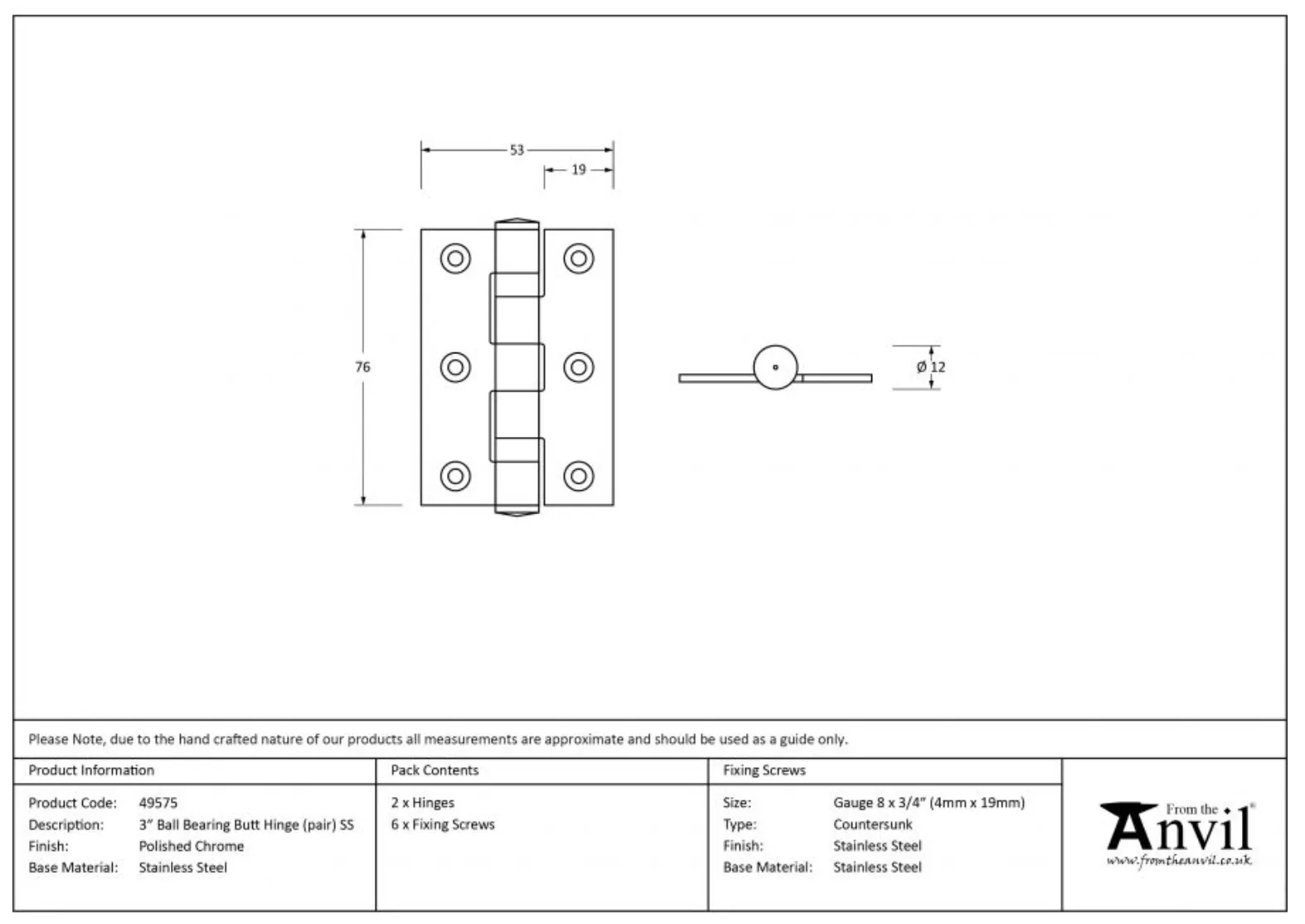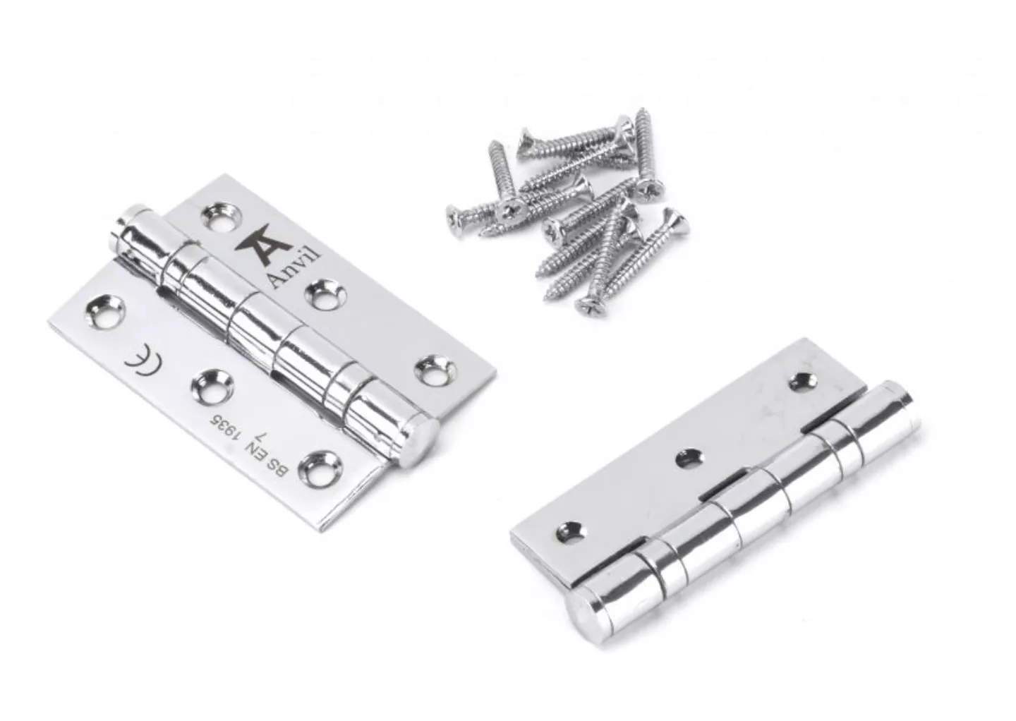 Pair Anvil Polished Chrome 3″ (76mm) Ball Bearing Butt Hinge | 49575