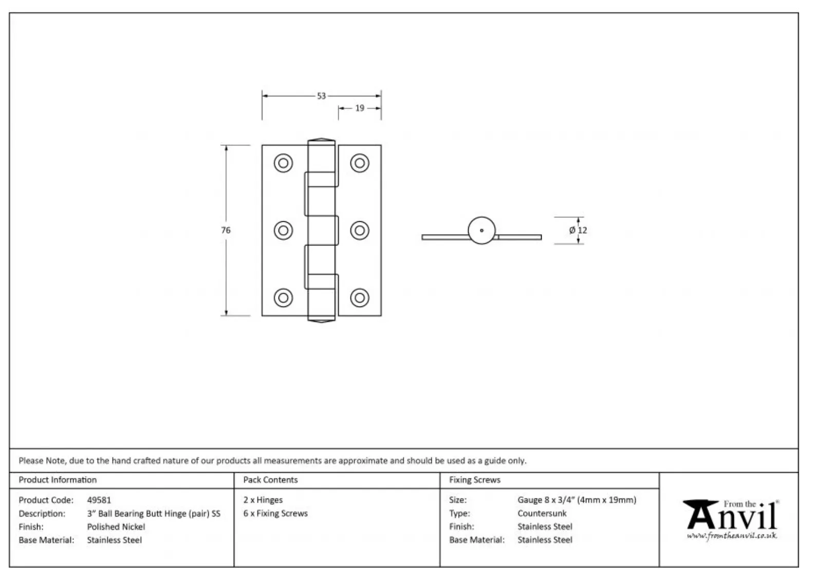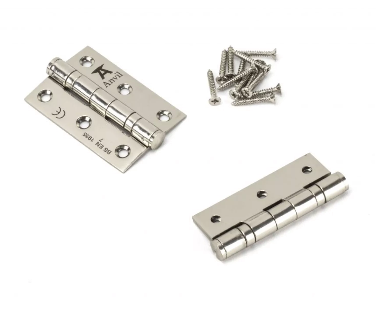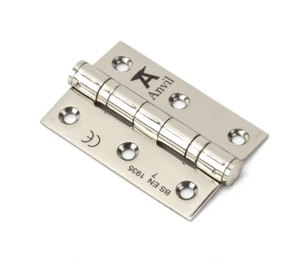Pair Anvil Polished Nickel 3″ (76mm) Ball Bearing Butt Hinge | 49581