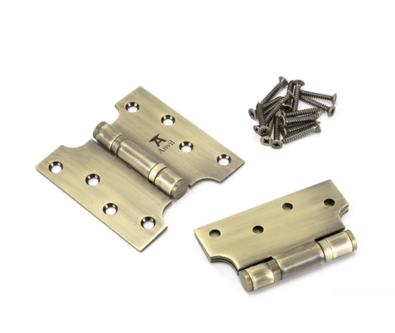 Pair From the Anvil Aged Brass 4x2x4″ Parliament Hinge | 49551