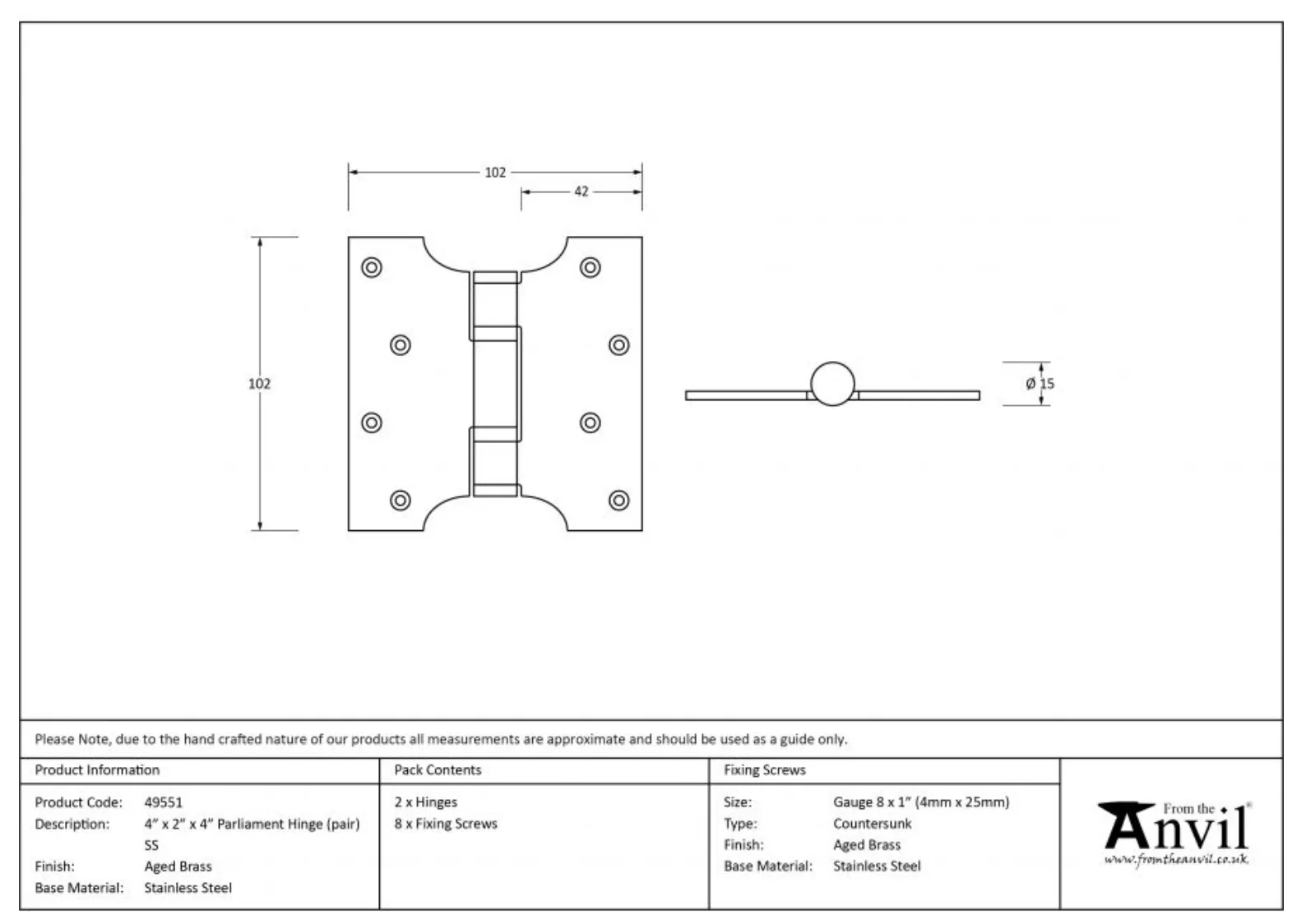 - Manufactured by From the Anvil