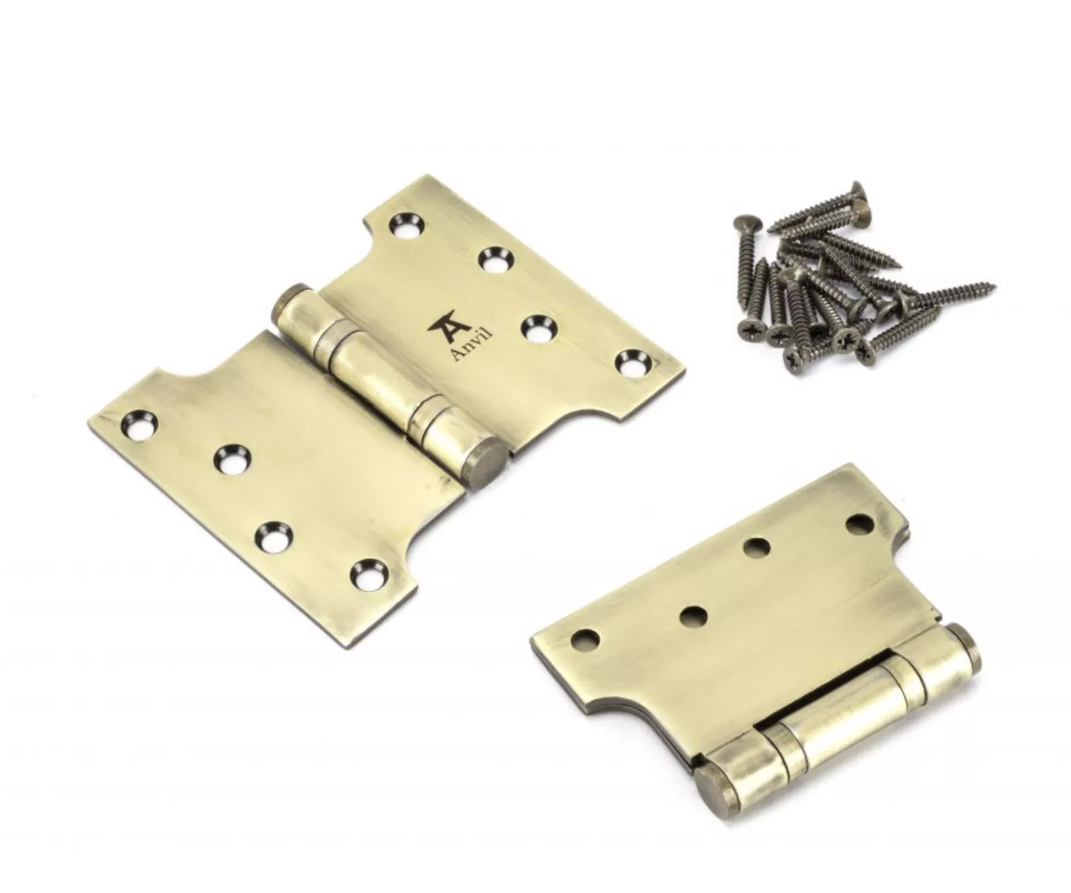 Pair From the Anvil Aged Brass 4x3x5″ Parliament Hinge | 49552