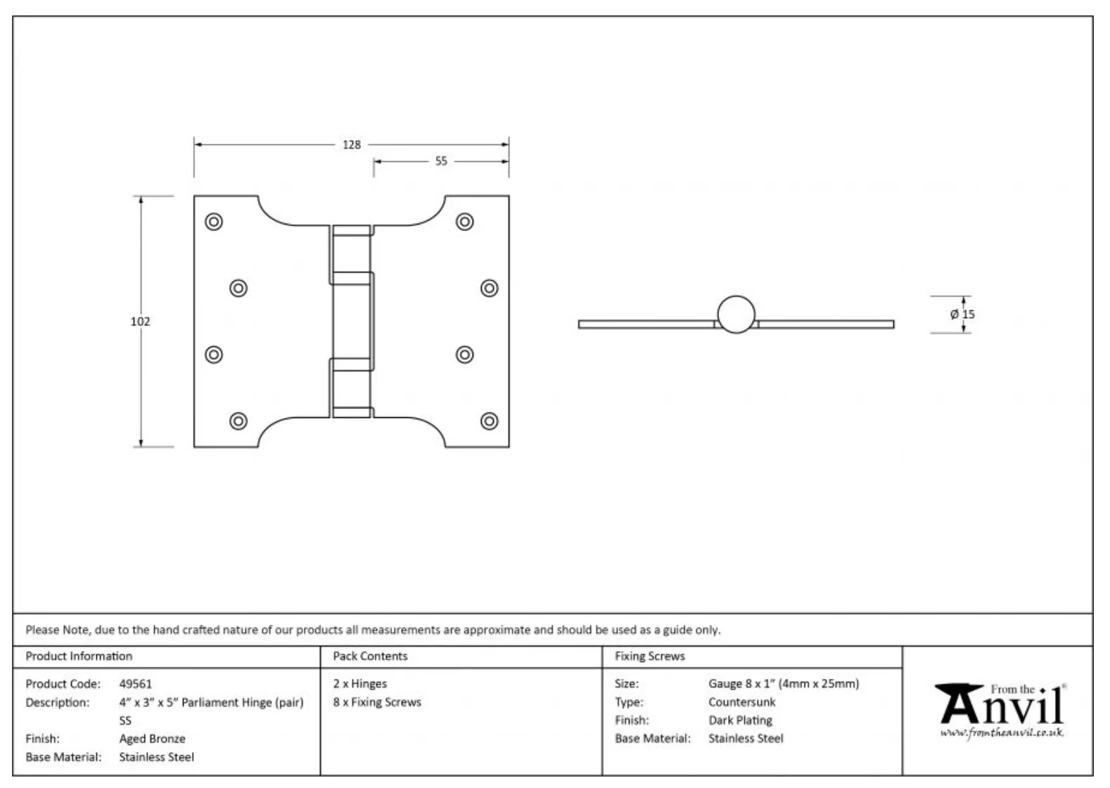 - Manufactured by From the Anvil