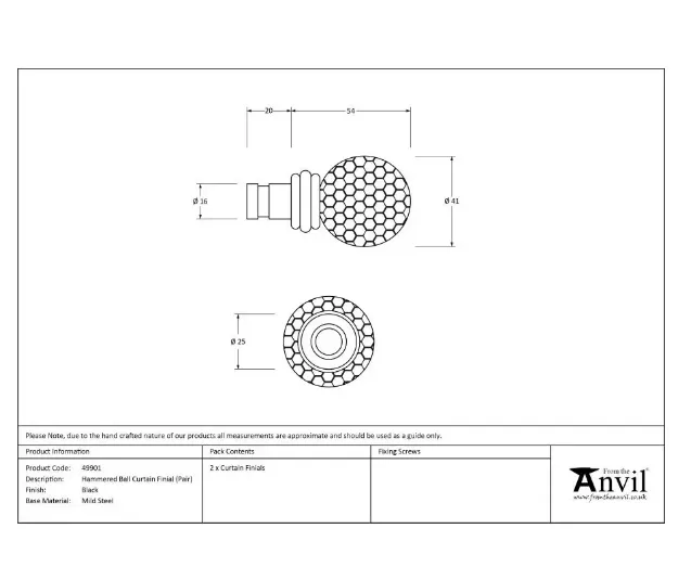 Pair From the Anvil Black Hammered Ball Curtain Finial | 49901