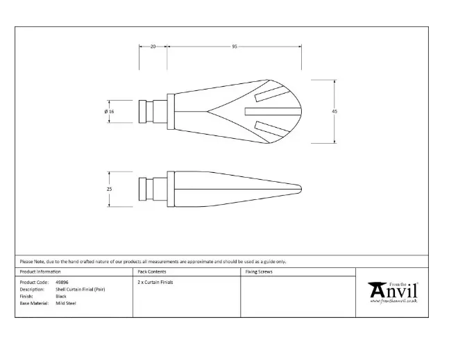 Pair From the Anvil Black Shell Curtain Finial | 49896