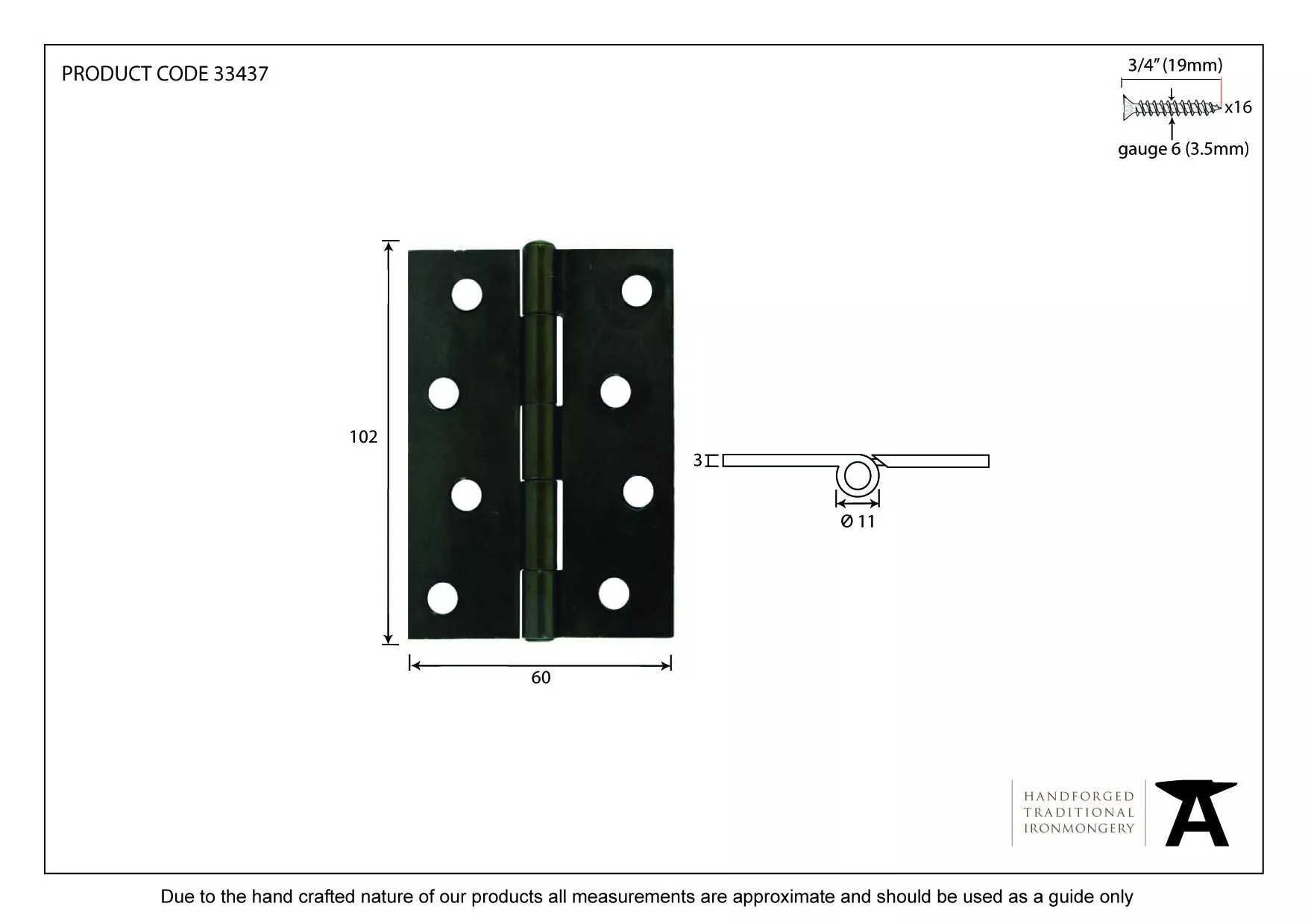 - Hinge Size: 102mm x 60mm (Beeswax & Pewter)