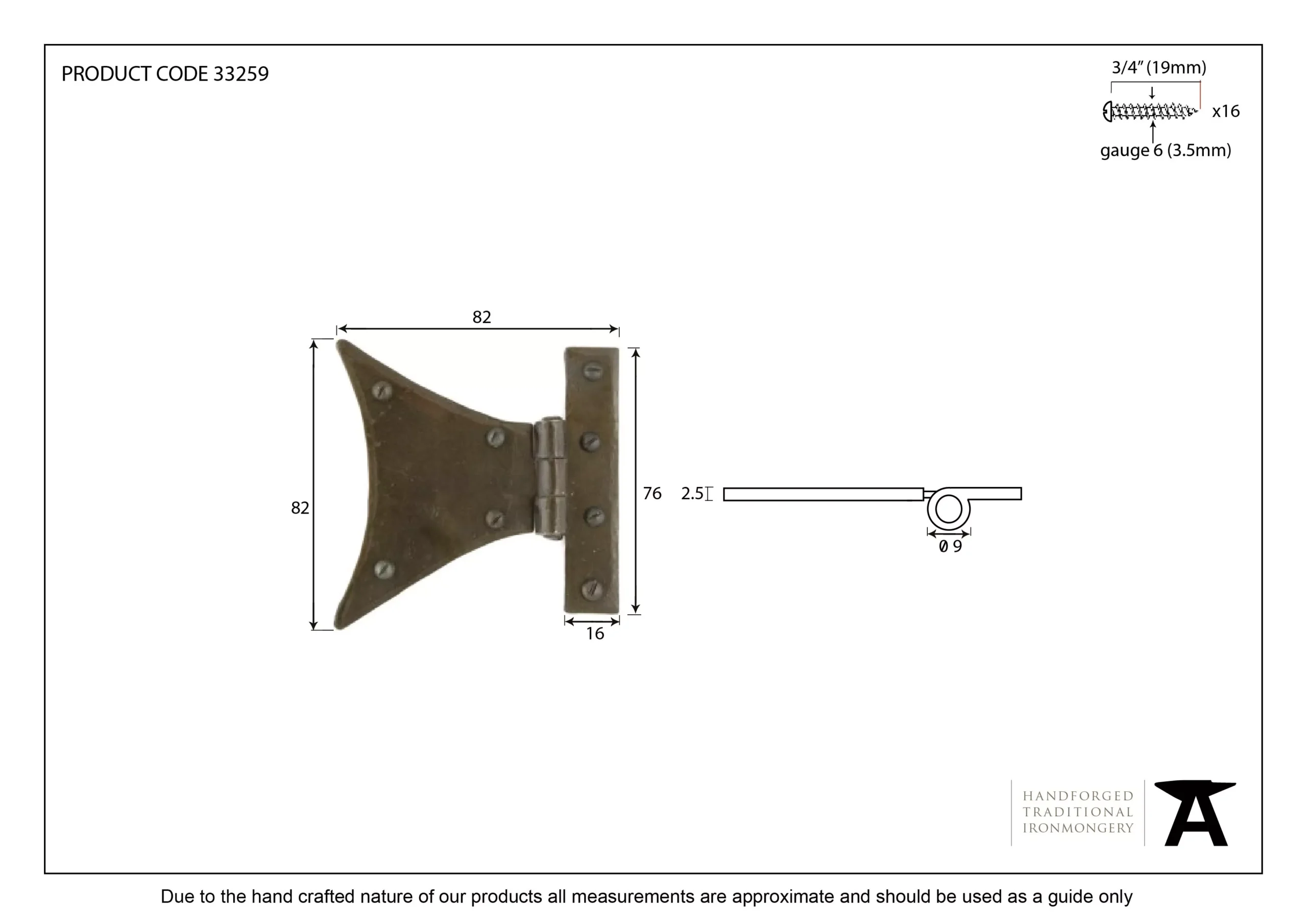 - Fixing Plate: 76mm x 16mm