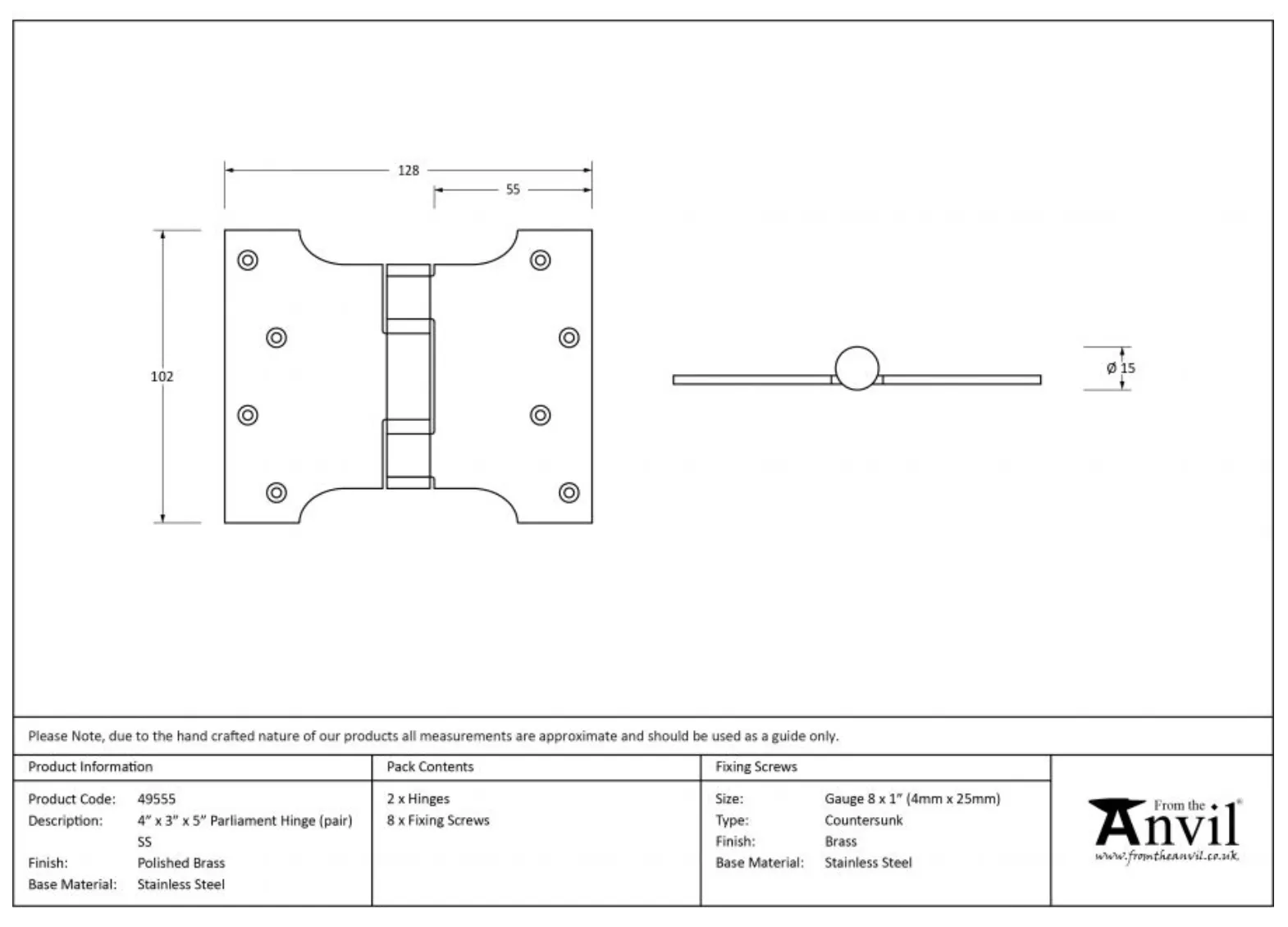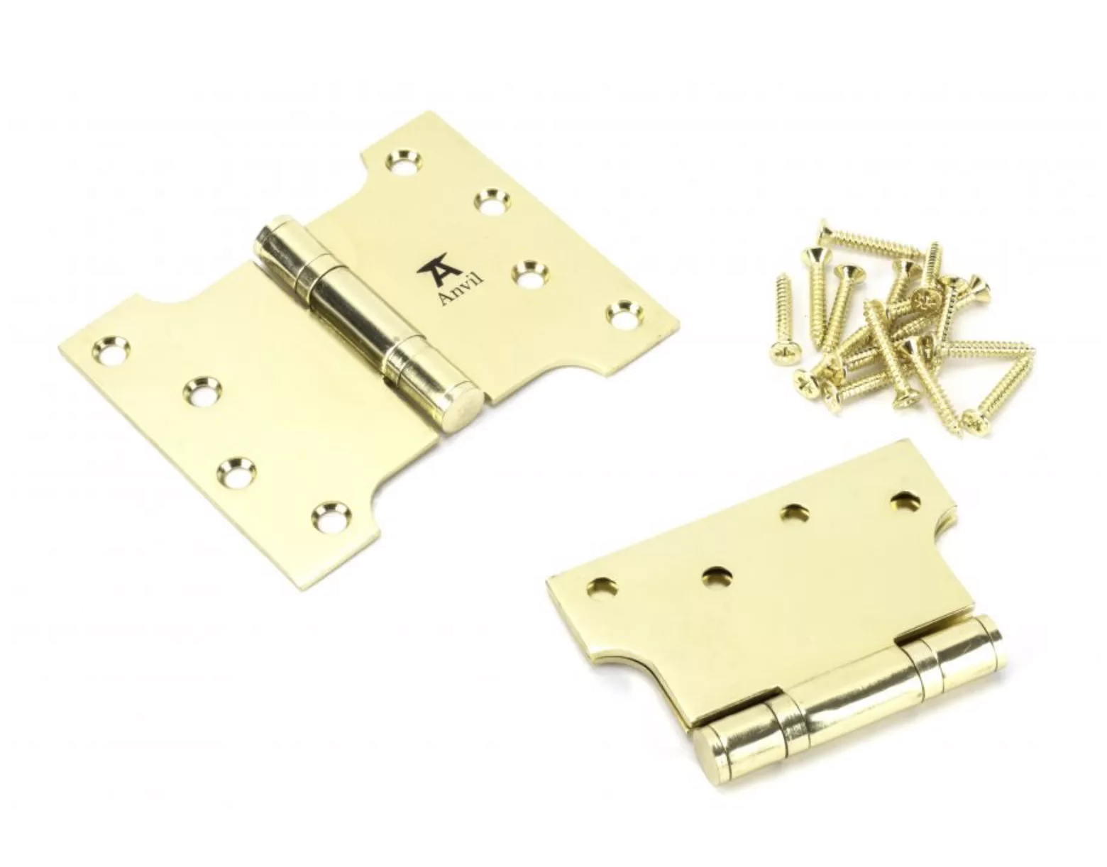 Pair From the Anvil Polished Brass 4x3x5″ Parliament Hinge | 49555
