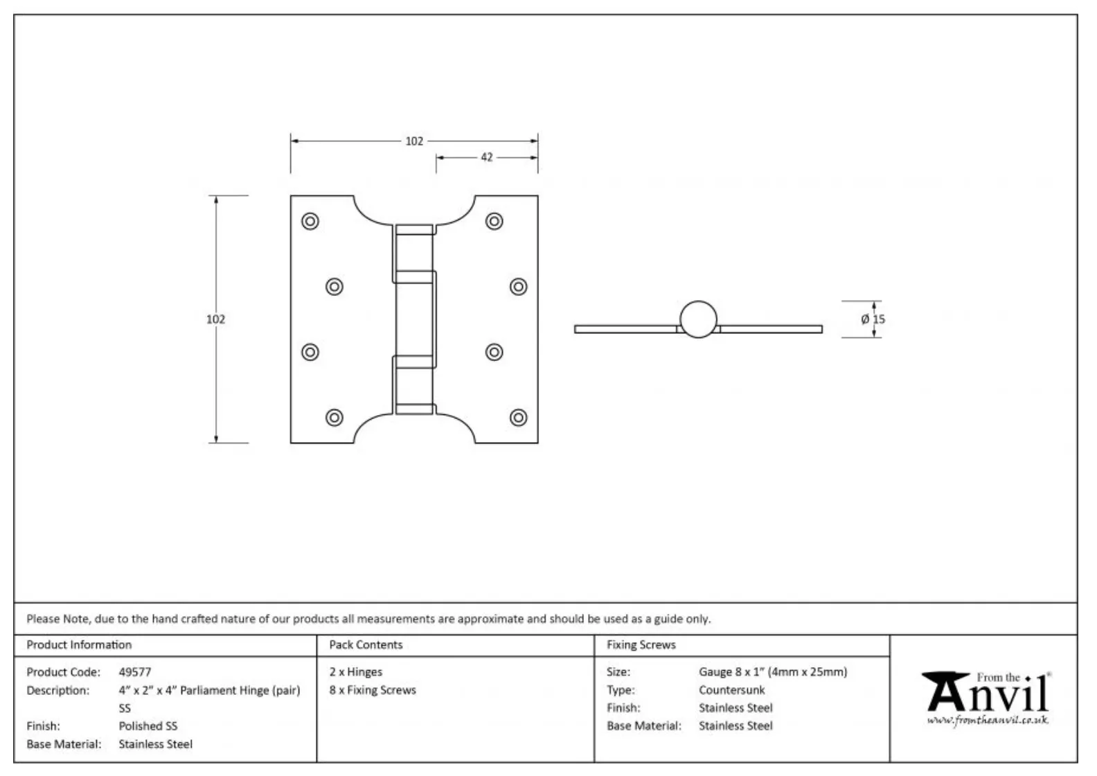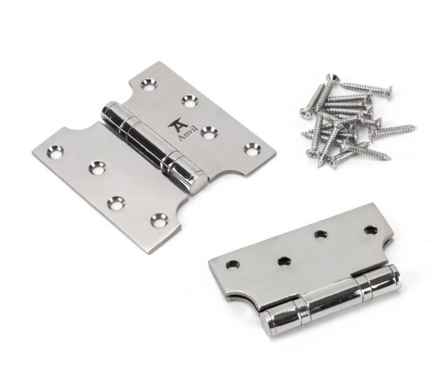 Pair From the Anvil Polished Stainless Steel 4x2x4″ Parliament Hinge | 49577