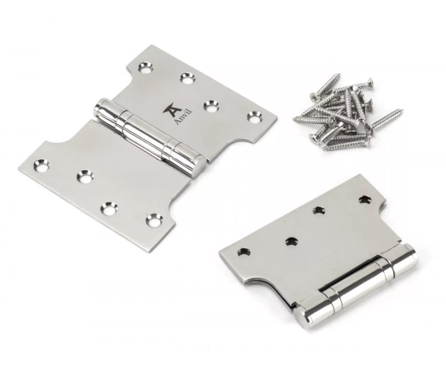 Pair From the Anvil Polished Stainless Steel 4x3x5″ Parliament Hinge | 49578