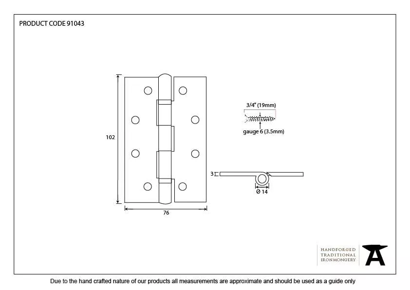- Hinge Size:102mm x 76mm