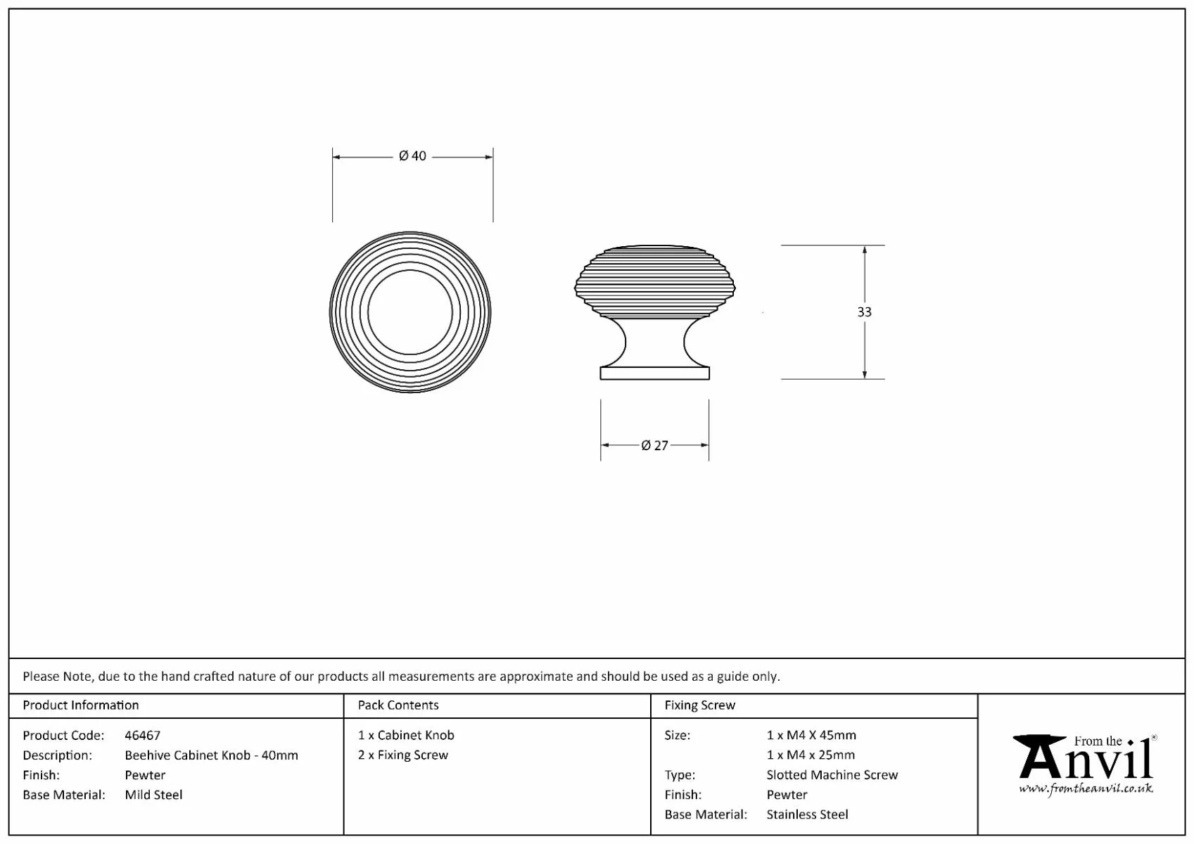 Pewter Beehive Cabinet Knob 40mm | 46467