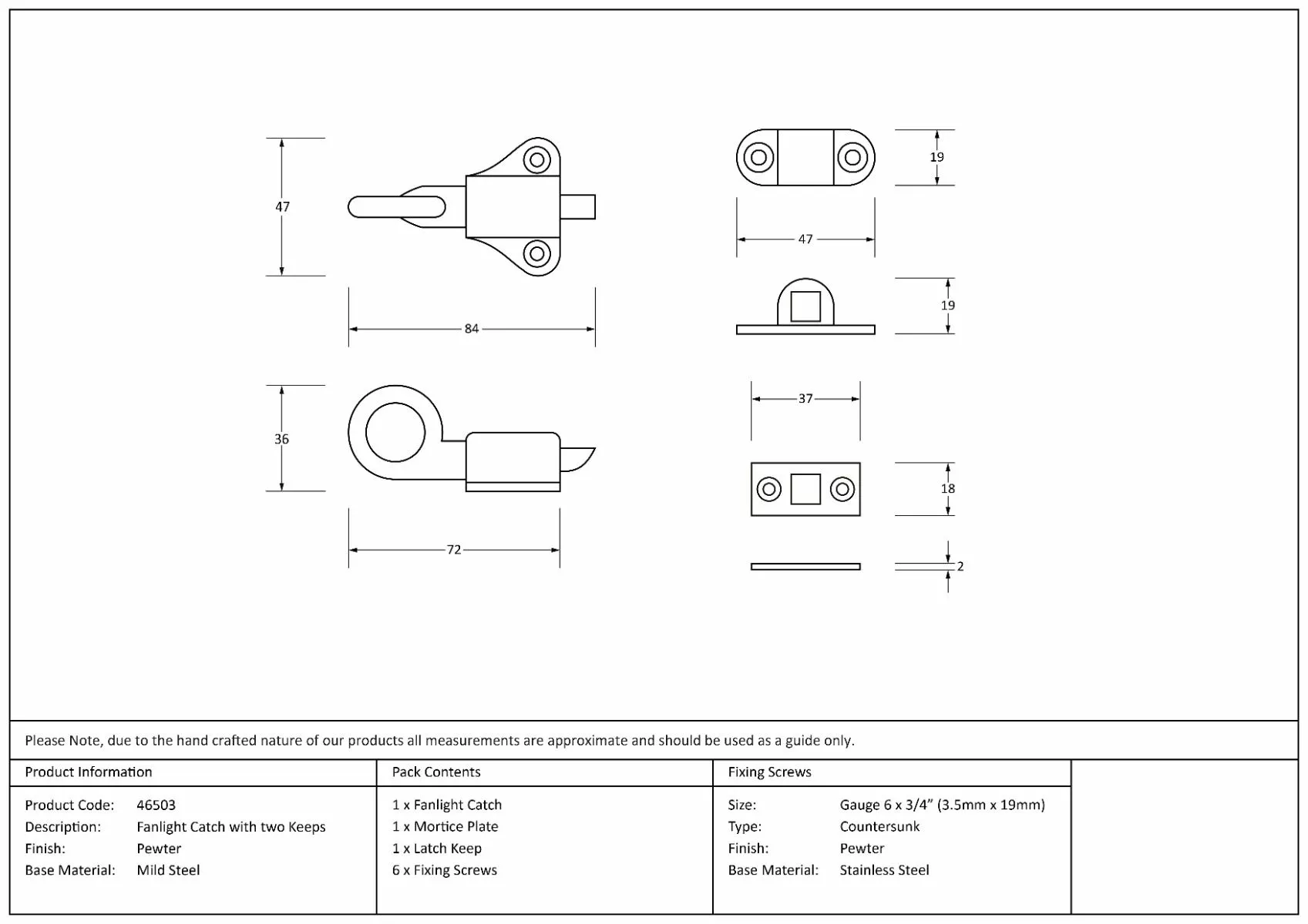 Pewter Fanlight Catch with two Keeps | 46503