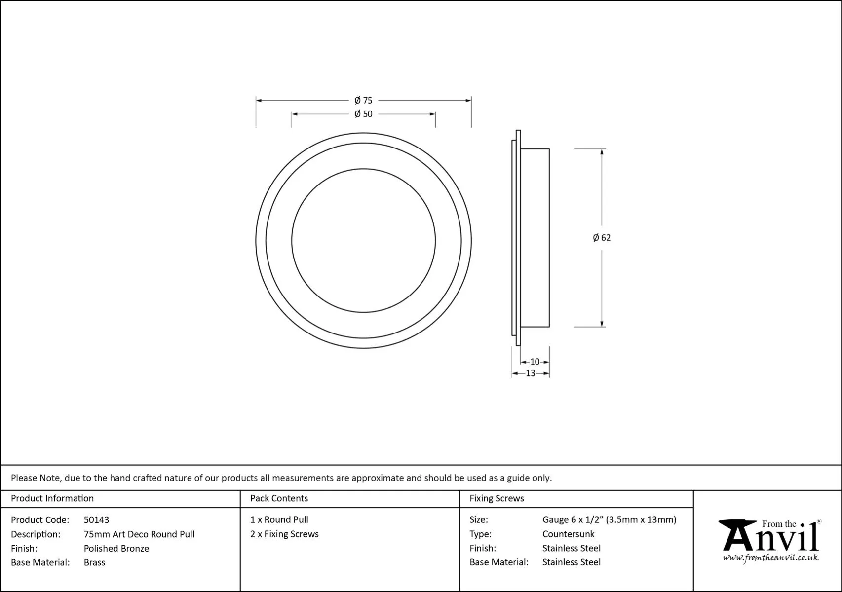 - Manufactured by From the Anvil/li>