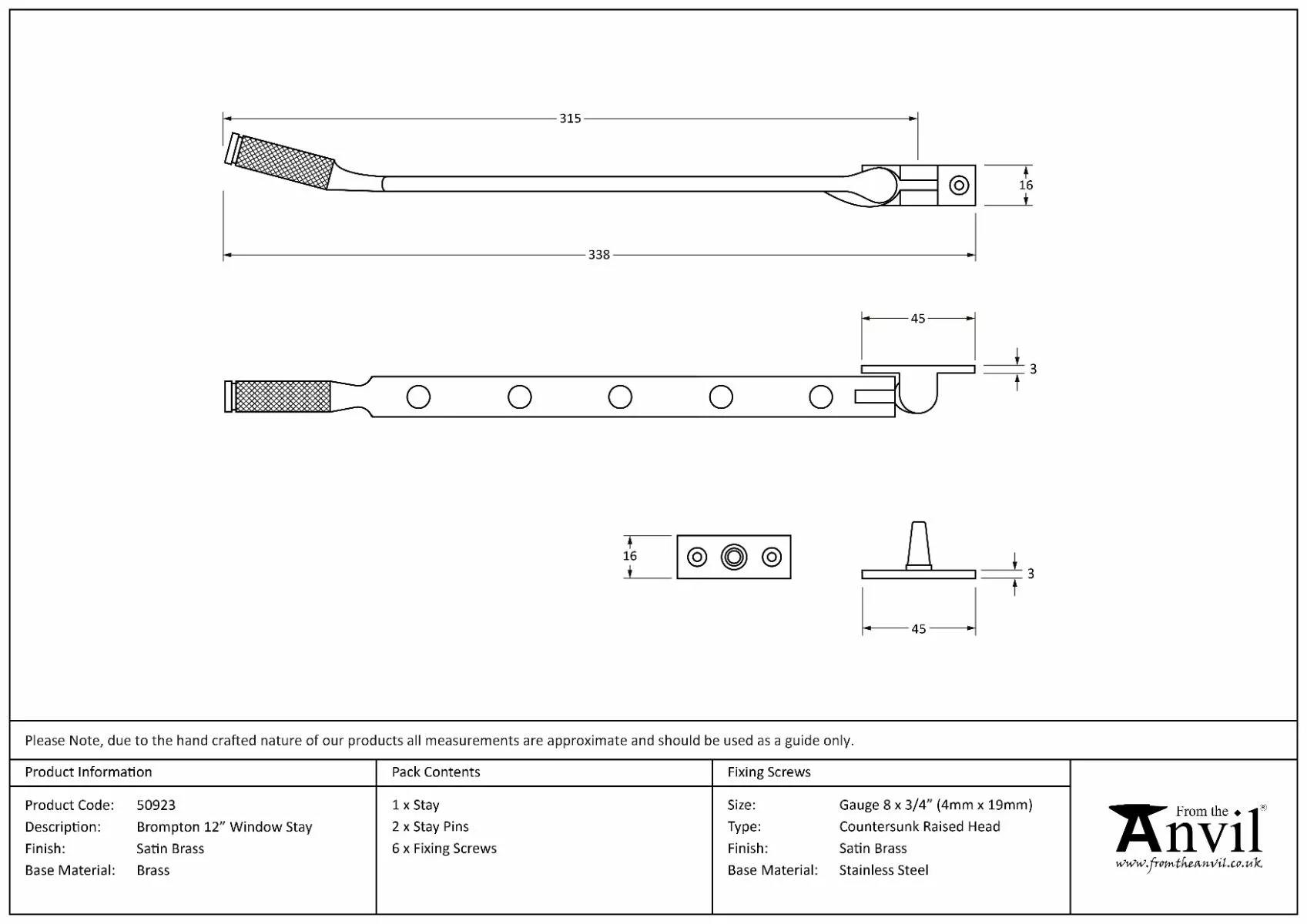 From the Anvil Satin Brass 12″ Brompton Stay | 50923