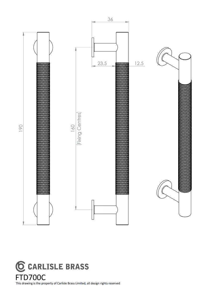 Satin Brass 190mm Knurled Pull Handle | FTD700CSB