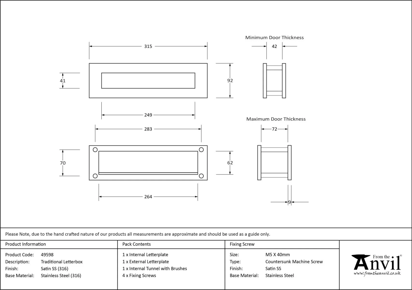 From the Anvil 315mm Satin Stainless Steel Marine (316) Traditional Letterbox | 49598