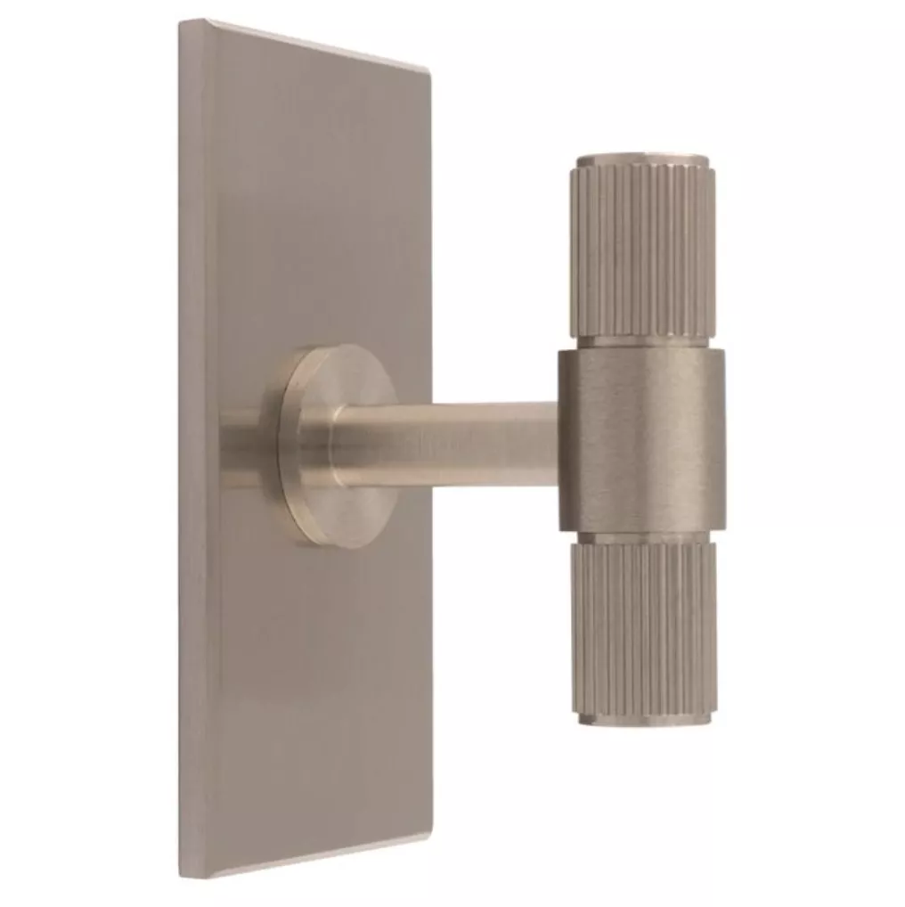 Satin Nickel 50mm Lines T-Bar Knob with Rectangular Backplate | BP711SN76SN