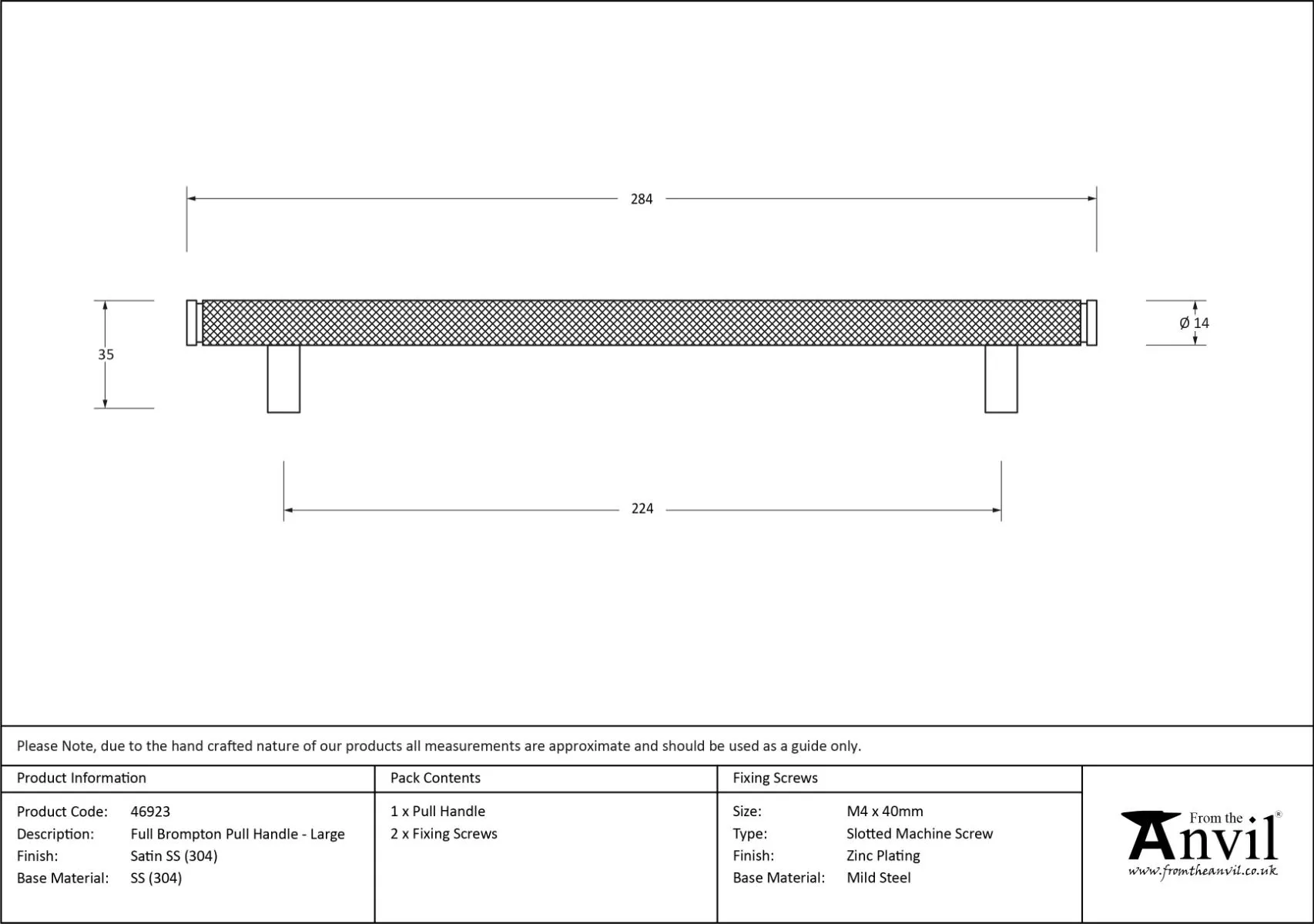 From the Anvil 284mm Satin SS (Grade 304) Full Knurled Large Brompton Cabinet Pull Handle | 46923