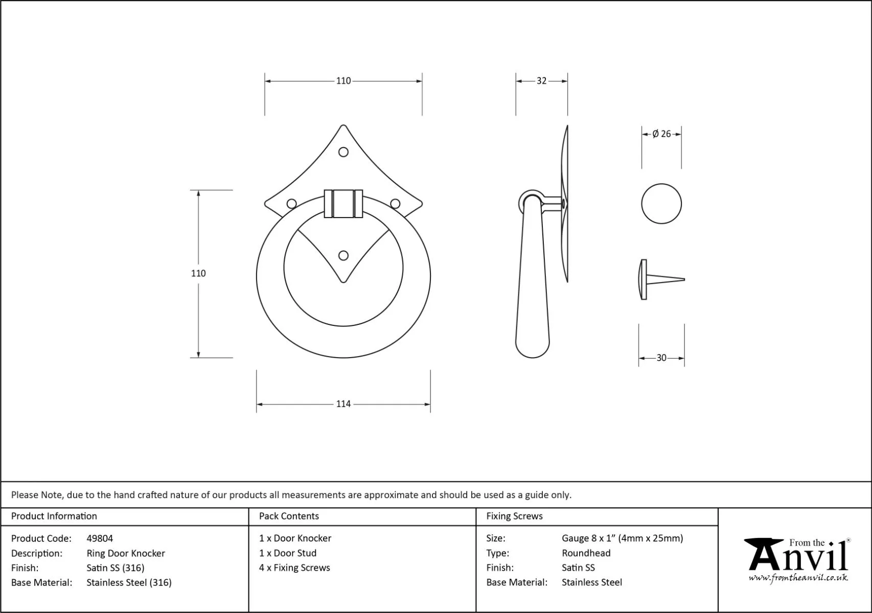 - This ring door knocker shows a true masterpiece of forging. Drawn from one piece of marine grade stainless steel bar and bent to form the ring, this highlights every hammer blow by our highly skilled blacksmiths.